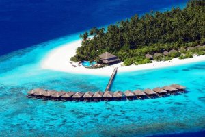 مناخ الجزيرة يتسم بالروعة وبأنه الأمثل لقضاء العطلات، فنادراً ما تنخفض درجات الحرارة في جزر المالديف دون 25 درجة مئوية.